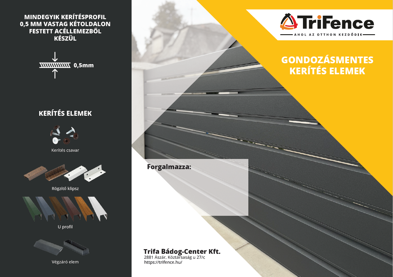 Trifa katalógus 2026 Trifa trapézlemezes prospektus Trifence Prospektus Tekercs és Táblalemez katalógus